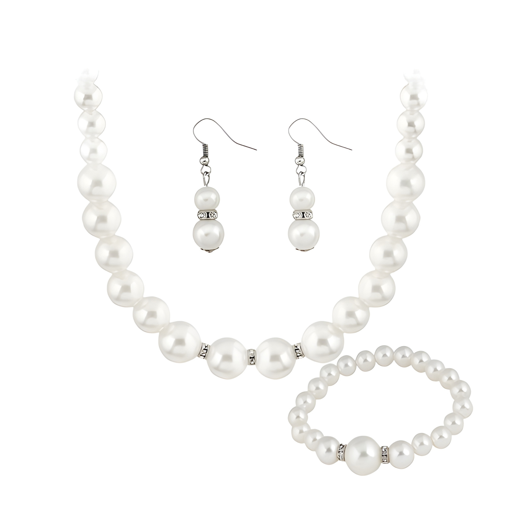 Composed of a necklace, bracelet, and earrings, each piece is united by the gentle roundness of pearls and the quiet rhythm of light. Every element extends the other, creating a natural and timeless harmony — refined, fluid, and effortlessly elegant.