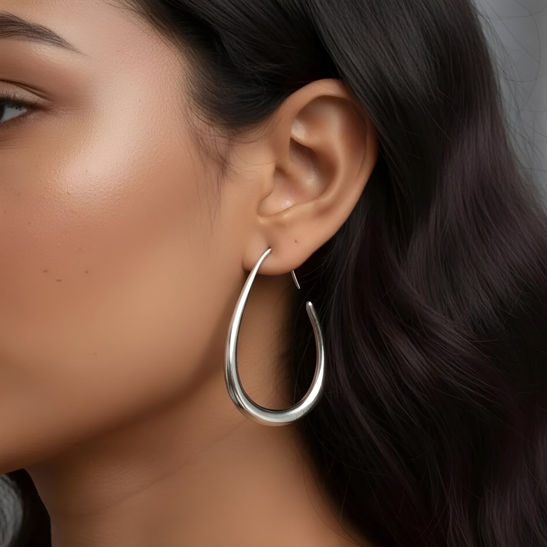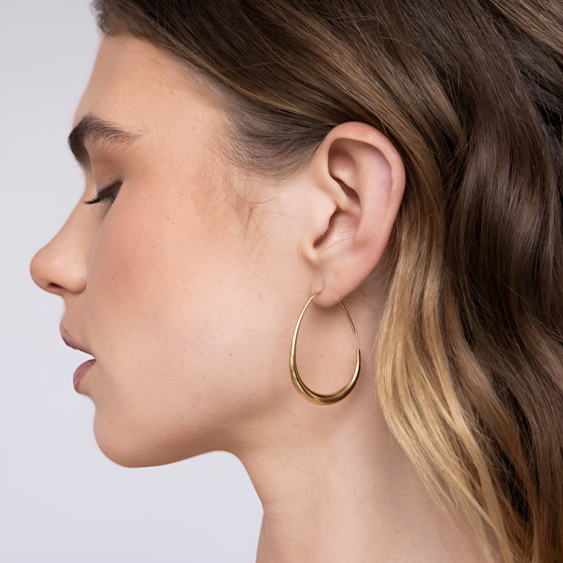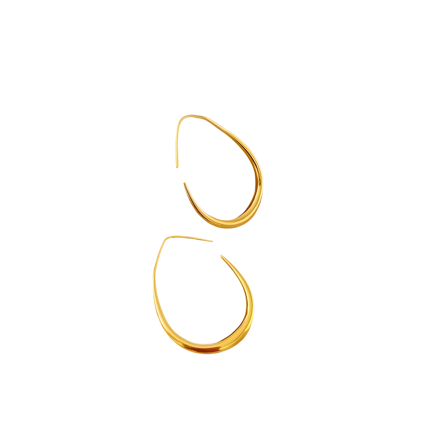 These earrings trace a soft, organic curve, capturing the light with subtlety. Their refined shape brings a delicate presence — both modern and timeless — ideal for a balanced and sophisticated style.
